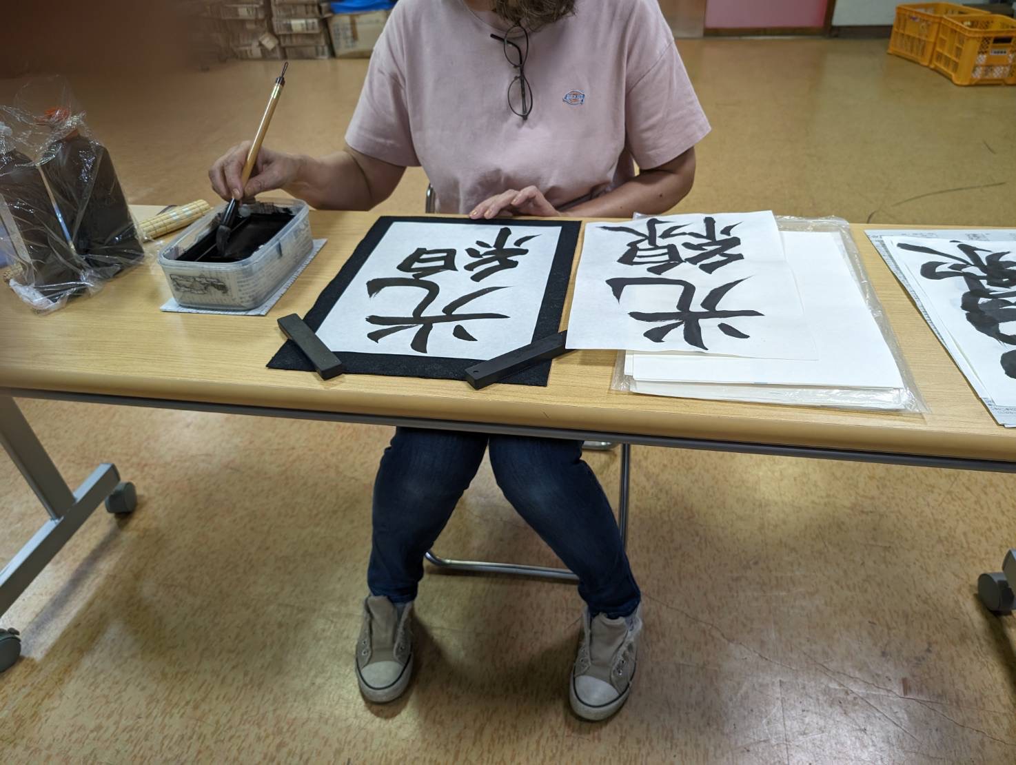 子ども園児や小学校下学年児はお絵描きを中心に、そして小学校上学年児は毛筆による書写に取り組みました。大人も頑張りました。