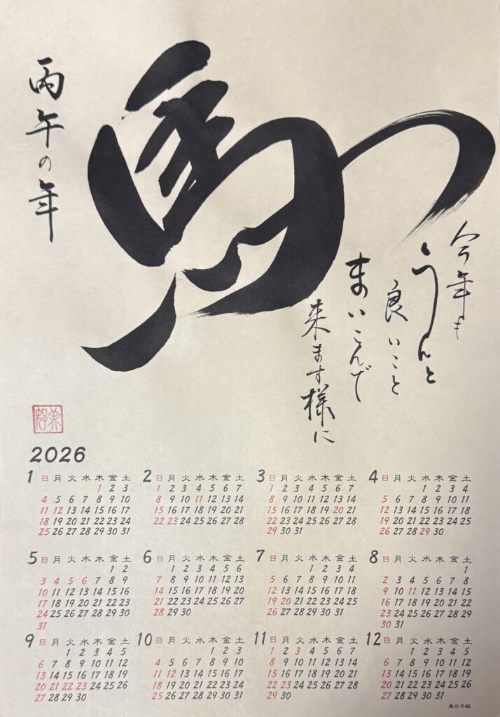 書写教室生が作成した令和8年のカレンダー作品をご紹介します。